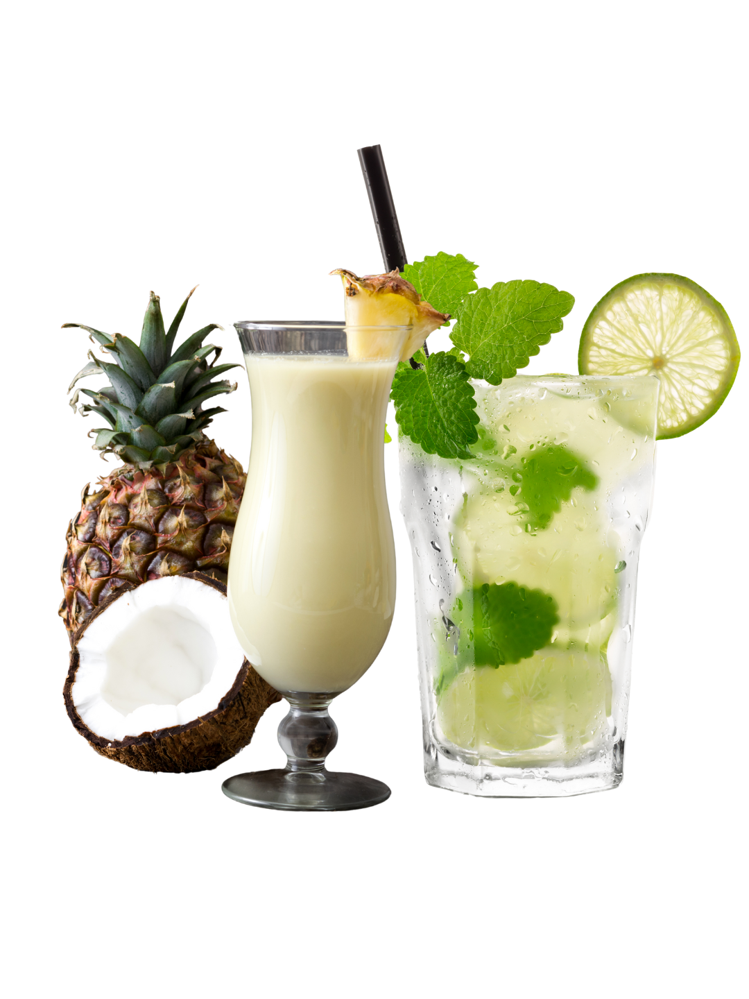 Ron blanco, lima, sirope azúcar y puré de sabores.